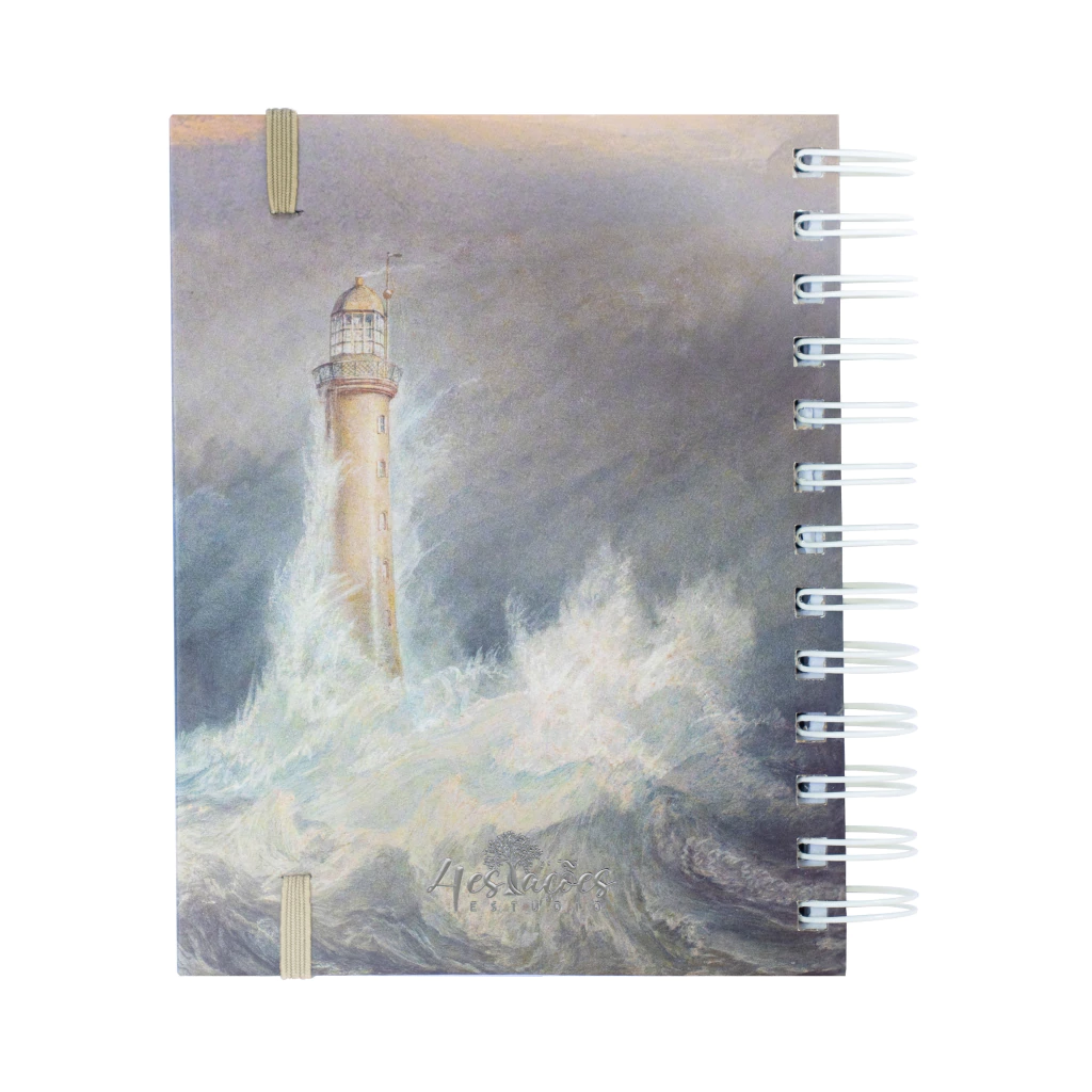A pintura em aquarela Farol Bell Rock (1819), do J.M. William Turner, é uma obra importante da pintura marítima romântica. Retrata um navio enfrentando o mar tempestuoso sob um céu dramático, enquanto um farol (na contracapa) se ergue firme entre as ondas, simbolizando esperança e orientação. Com pinceladas intensas e uso expressivo da luz, Turner transforma a cena marítima em uma metáfora da luta humana diante das forças da natureza, revelando sua maestria em capturar movimento, atmosfera e emoção — marcas de sua produção romântica e inovadora.