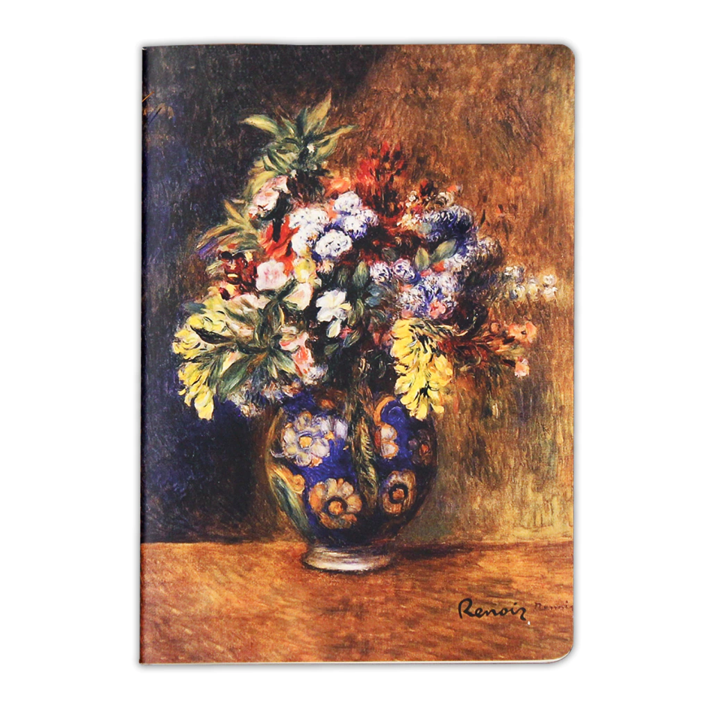 A obra da capa “Flores em um vaso”, de 1878, pintada por Pierre Auguste Renoir, possui um vaso em uma mesa de jantar com um arranjo de variadas espécies de flores, ao longo de sua vida o artista pintou diversas obras com a mesma essência.