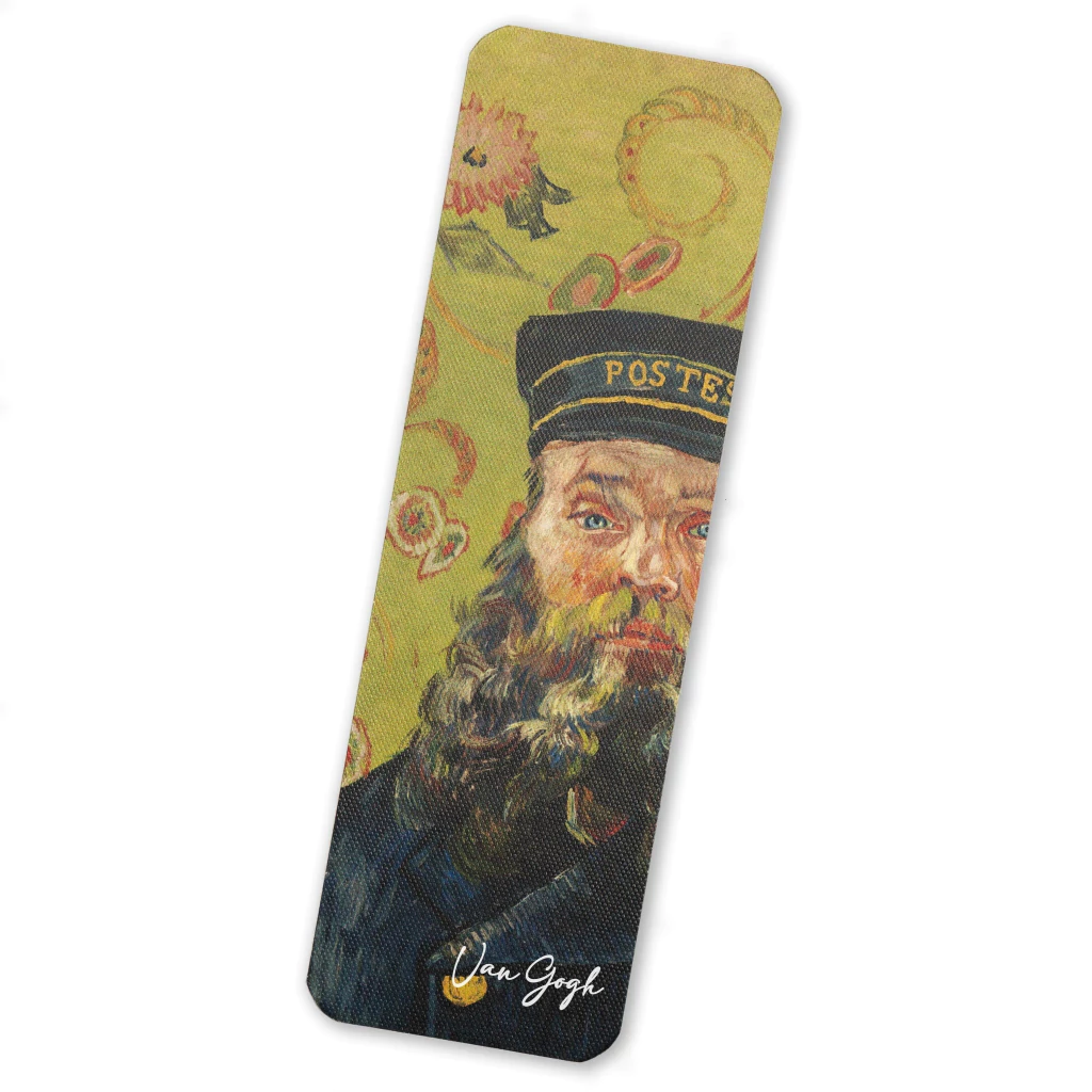 A pintura da frente chama-se “Retrato de Joseph Roulin”, do artista Vincent van Gogh, e foi produzida em 1888.